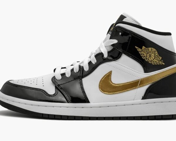 Air Jordan 1 Mid SE Black Gold Patent Leather