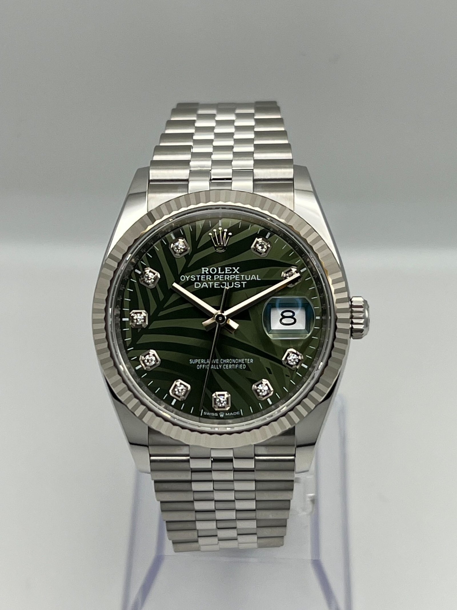 2025 Watch Datejust 126234 White Gold Stainless Steel Palm Motif Diamond Dial Jubilee (2023)