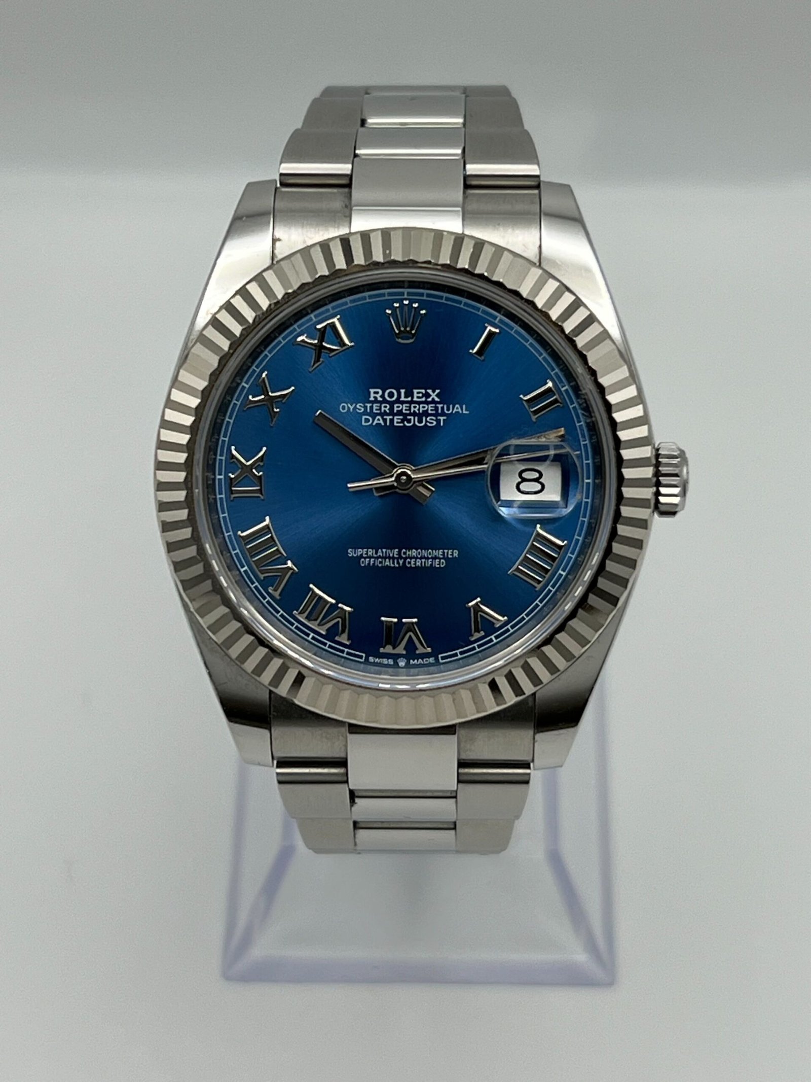 The 2025 Watch Datejust is designed with a 41mm stainless steel case.?complemented by the signature fluted bezel. and styled on an oyster bracelet. The?bright blue dial features Roman numeral?hour markers and hands and hosts a date feature at 3 o’clock. The 2025 Watch Datejust is a classic model and the next addition to your collection.