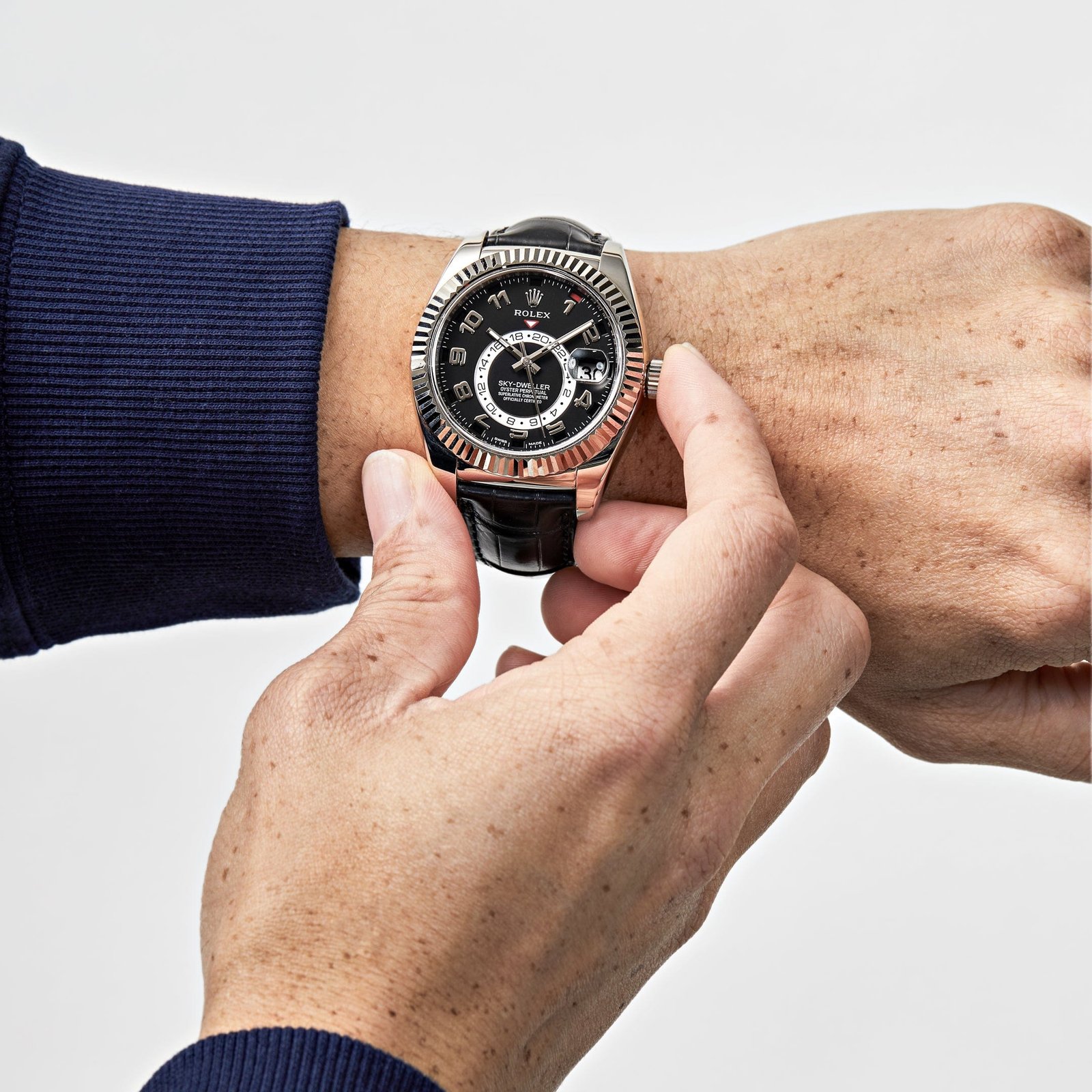 2025 Watch Sky-Dweller 326139 White Gold Black Dial Leather Strap