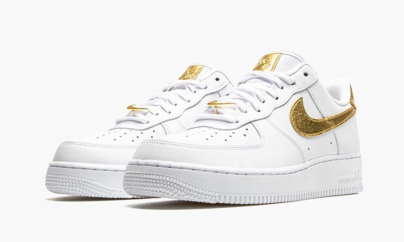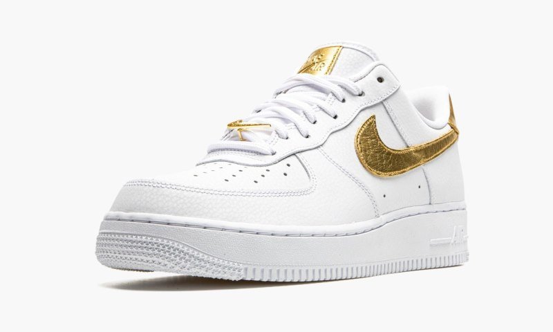 The Nike Air Force 1 Low ??Gold Foil?? gives a luxurious look to the timeless and versatile silhouette. A staple in not only Nike??s seasonal footwear collections but in rotations of sneaker collectors around the world, the Air Force 1 is one of the most easy wearing and stylish shoes available. This ??Gold Foil?? colorway is equipped with shiny gold leather accents on the Swoosh branding on either side, on the heel, and the tag stitched onto the white leather tongue. A gold Swoosh lace dubrae is integrated into the design of the shoelaces and the rest of the upper is finished off in a buttery cut of white pebbled leather. An embossed Swoosh can be found on the aforementioned heel tab and tonal ??Air?? branding appears on the heel of the white rubber midsole. Release date: November 2020.