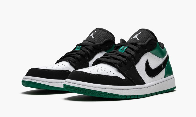 The Air Jordan 1 Low ??Mystic Green?? is built on function and fashion. The versatile low-top Jordan 1 shoe can be worn just about anywhere. Using a combination of a white leather base with black nubuck overlays, the Air Jordan is unique because of its vibrant green accents on the heel and sole. Details include an exaggerated tongue, wide flat laces, and a well-cushioned Air-equipped sole unit. The insole also has a hidden pop of pink color.