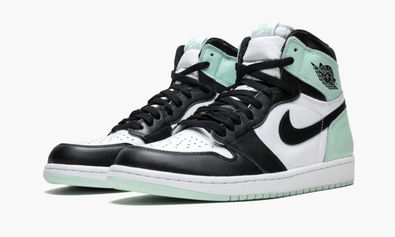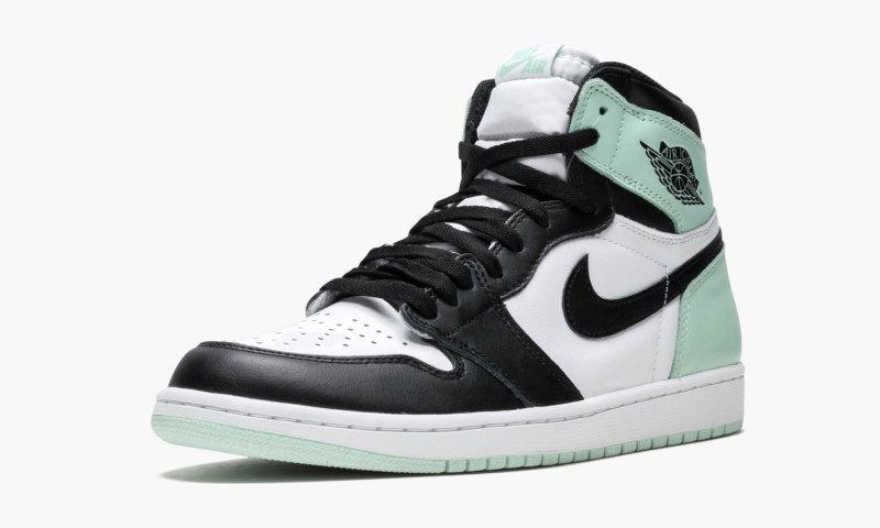 White/black/mint leather Air Jordan 1 Retro High OG NRG sneakers from jordan featuring round toe, flat rubber sole, front lace-up fastening, branded insole, signature Swoosh logo detail and ankle-length. These styles are supplied by a premium sneaker marketplace. Stocking only the most sought-after footwear, they source and curate some of the most hard to find sneakers from around the world.