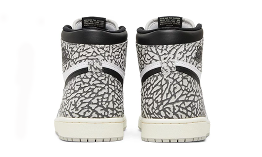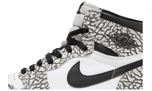 The Air Jordan 1 Retro High OG ‘White Cement’ showcases the signature design feature of the Air Jordan 3: namely, Tinker Hatfield’s unique elephant print, composed of irregular lines etched throughout the high-top’s grey leather overlays. They’re contrasted by a white leather base and black leather construction on the high-cut collar and Swoosh. Additional branding elements take the form of a woven Nike Air tongue tag and a Wings logo stamped on the lateral collar flap. Encapsulated Air-sole cushioning enhances the aged off-white midsole, supported underfoot by a grey rubber outsole.