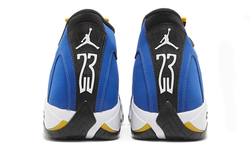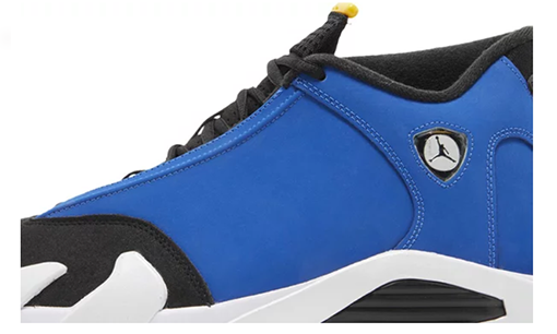 Featuring a vibrant color scheme inspired by Michael Jordan’s high school alma mater, the Air Jordan 14 Retro ‘Laney’ revives an OG 1999 release in mid-top form. A bold royal blue finish is executed on the smooth nubuck upper, bolstered by a forefoot overlay in black nubuck. A contrasting pop of Varsity Maize lands on the tongue, matching the Jumpman logo embroidered on the toe box. A second Jumpman icon decorates the Ferrari-inspired badge that decorates the lateral side. Lightweight cushioning is provided by a Phylon midsole, fitted with responsive Zoom Air units in the forefoot and heel.