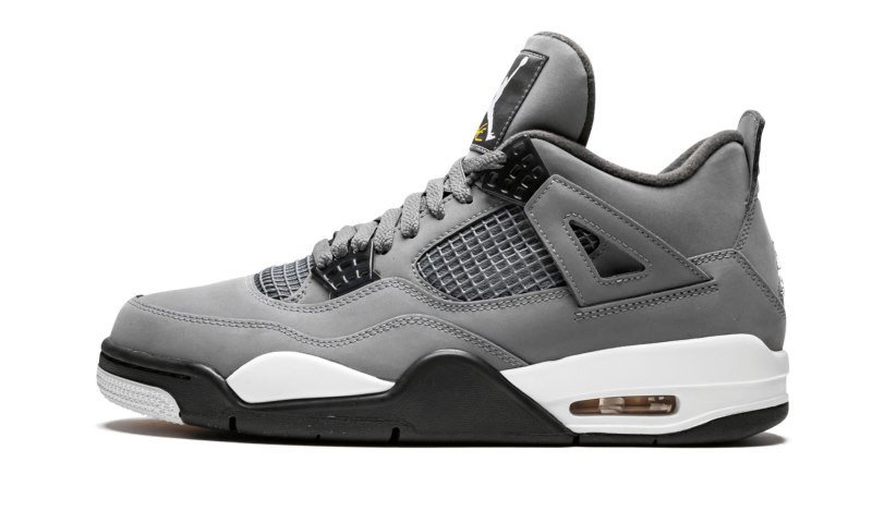 The Air Jordan 4 ??Cool Grey?? is the 2019 retro of the classic colorway. Originally released in 2004 as one of the first non-original colorways of the iconic Air Jordan 4, the ??Cool Grey?? edition became a rare and coveted sneaker throughout the years. Jordan collectors welcomed it back in 2019 with open arms. This 2019 version features the exact same look as the original release, constructed with a grey nubuck upper with black accents and a white midsole. Hits of yellow are found on the ??Flight?? logo on the tongue, the ??Air Jordan?? patch on the inside of the tongue, the visible Air unit, and outsole accents. Chrome Jumpman logos on each heel complete the classic look. The Air Jordan 4 ??Cool Grey?? released on August 1, 2019.