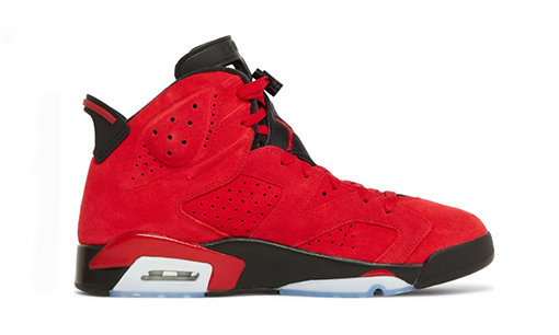 The Air Jordan 6 Retro ‘Toro Bravo’ features a bold one-note finish inspired by the Air Jordan 5 of the same name, which released in 2009 as one-half of the Raging Bull Pack. The championship silhouette makes use of a crimson suede upper, contrasted by black accents on the tongue, collar lining and spoiler-like heel tab. Perforated detailing offers improved breathability, while a snug inner sleeve delivers a secure, comfortable fit. Lightweight cushioning arrives via a two-tone polyurethane midsole, fitted with a visible Air-sole unit in the heel and undergirded by a translucent rubber outsole.