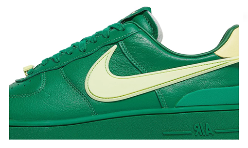 The AMBUSH x Nike Air Force 1 Low ‘Pine Green’ continues the partner brands’ creative partnership with a lush and stylish take on the legacy silhouette. Green textured leather is utilized on the upper, which combines heritage details — including variable width lacing and a perforated toe box — with a new TPU heel clip and an elongated Swoosh in Citron. The fluorescent hue is repeated on the leather heel tab, ‘AF1’ lace dubrae, and a dual-branded woven tag atop an exposed foam tongue. A matching green rubber cupsole packs encapsulated Air-sole cushioning for a comfortable ride.