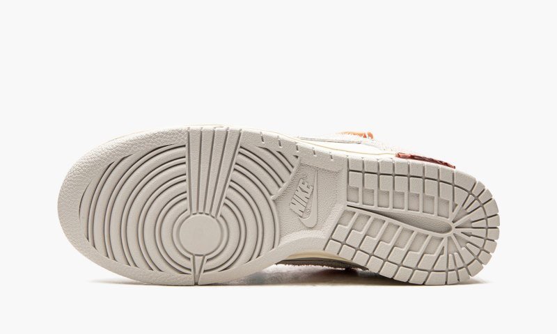The Off-White x Nike Dunk Low ??Lot 19?? is one of fifty colorways of the retro basketball, skate, and lifestyle shoe designed by Virgil Abloh for the ??Lot 50?? collection. Released by Nike in August 2021, ??Lot 50?? succeeded Abloh??s influential ??The 10?? collaboration with Nike and Jordan that saw models like the Air Jordan 1, Nike Air Max 97, and others, undergo dramatic changes. Here, on ??Lot 19,?? Sail leather appears on the perforated toe, mid-panel, collar, and heel. Both the overlays and Swoosh are featured in hairy Neutral Grey suede. Classic black ??Nike?? branding appears on the heel. A secondary, bungee cord-like lacing system appears on the upper, a look that originated on the first Off-White x Nike Dunk collection from 2019. A traditional lacing setup can also be found on the shoe. On the midsole, a marbled pink-and-black insert with ??Lot 19 of 50?? branding completes the look. Release date: August 9, 2021