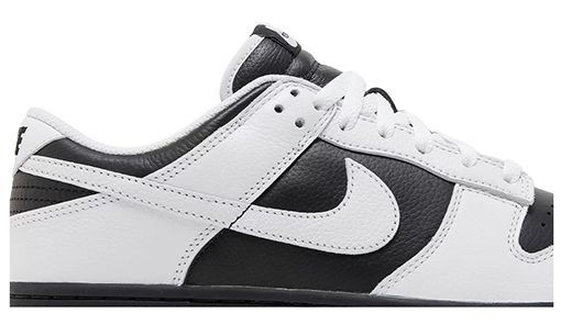 The Nike Dunk Low ‘Reverse Panda’ delivers an essential two-tone rendition of the vintage hoops shoe. A color-flipped take on the popular ‘Panda’ Dunk colorway, the low-top carries a tumbled leather upper, featuring a black foundation with contrasting white overlays and a color-matched Swoosh. Nike branding appears on the woven tongue tag and back tab. Underpinning the sneaker is a traditional cupsole that pairs black sidewalls with a crisp white rubber outsole.