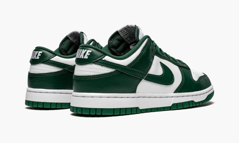 The Nike Dunk Low ??Team Green?? is based on team uniform colors of the Michigan State Spartans college basketball team. The ??Team Green?? is inspired by Nike??s original ??Be True to Your School?? pack that was dedicated to some of the top college basketball programs in the country during the mid-to-late 1980s. In 2020, Nike released the ??Spartan Green?? Dunk High, which is basically a high-top version of the ??Team Green?? seen here. Like the aforementioned design, the ??Team Green?? features a white leather base with contrasting Team Green leather overlaid panels. A green leather Swoosh appears on either side and white ??Nike?? detailing is embroidered on the heel. Green laces are layered over the white nylon tongue. A white midsole and green outsole finish off the look of the Nike Dunk Low based on the color block of the Michigan State Spartans?? team uniforms. Release date: April 16, 2021.