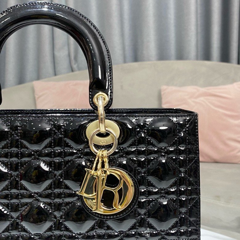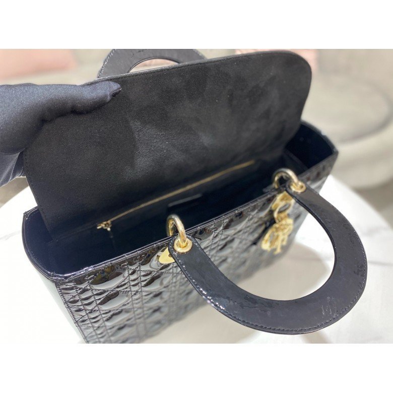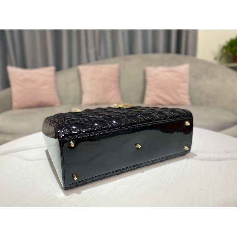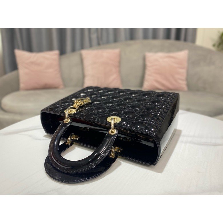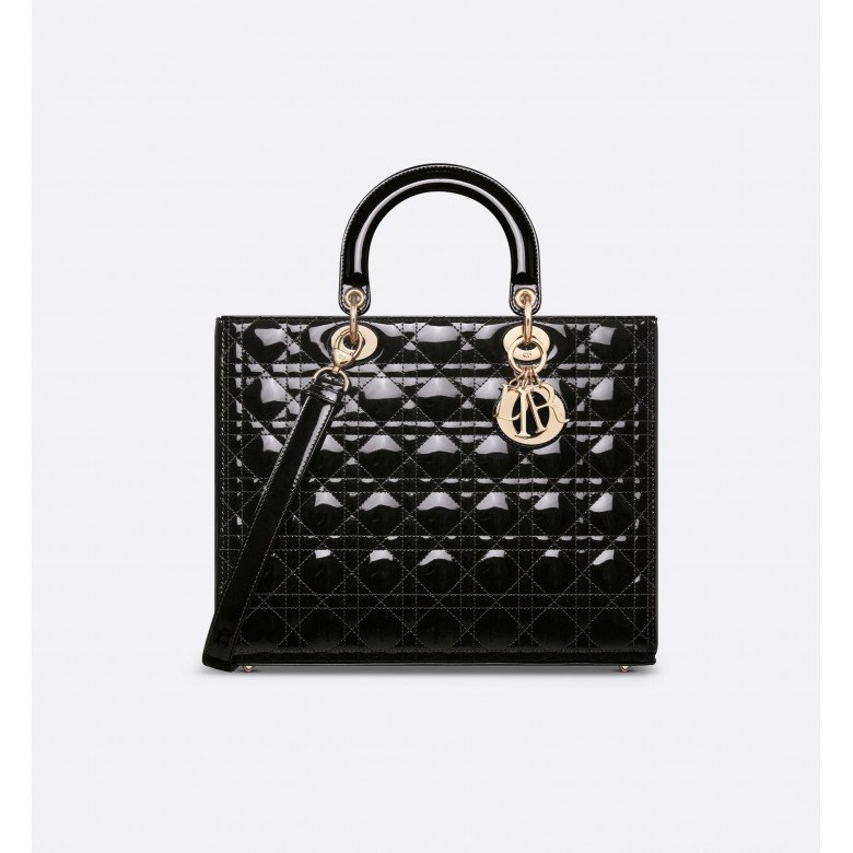 Large Lady Dior bag Lacquer leather