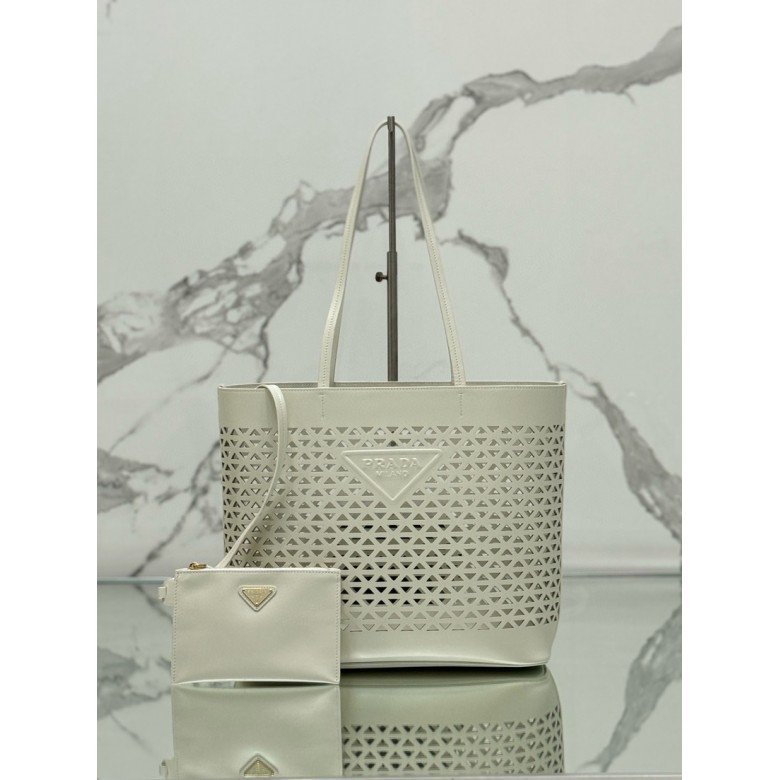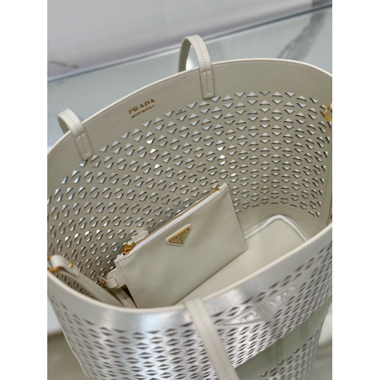 Large perforated leather tote bag