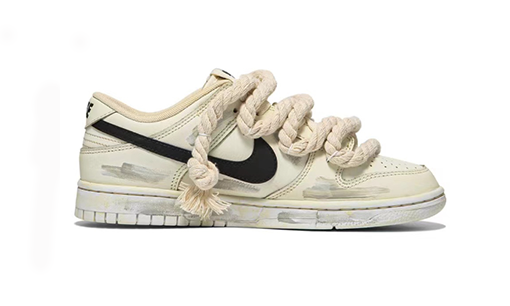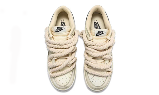 Nike Dunk Low Retro Custom “Heatwave Made” Oxidized Distressed Hemp Rope Straps Beige
