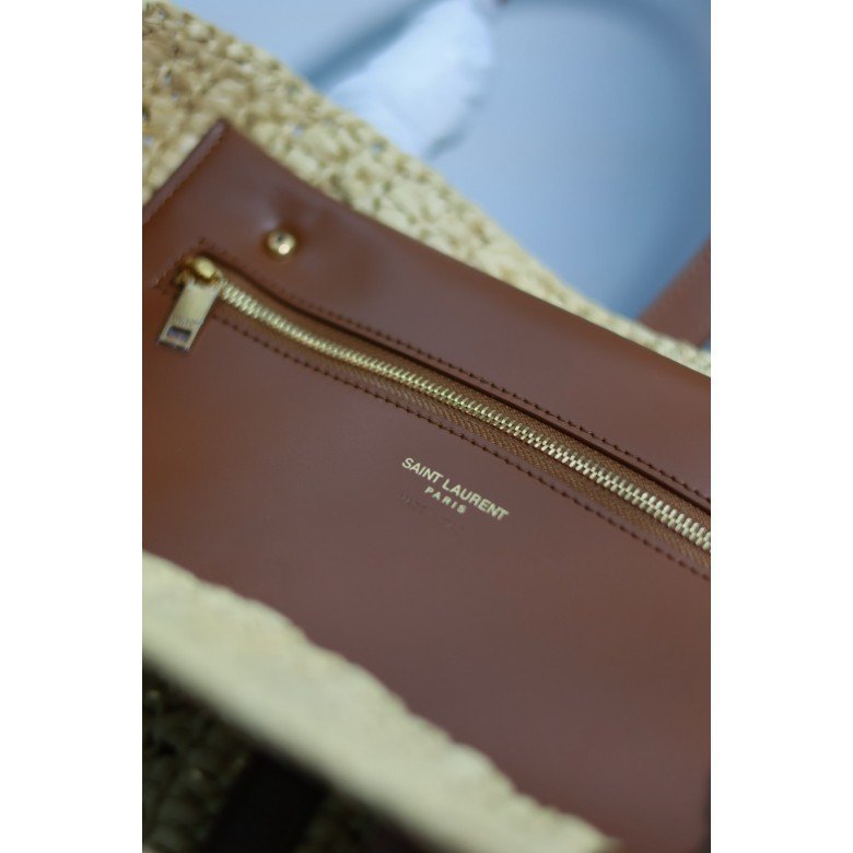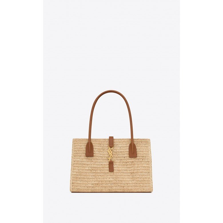 PANIER RECTANGLE IN RAFFIA AND LEATHER