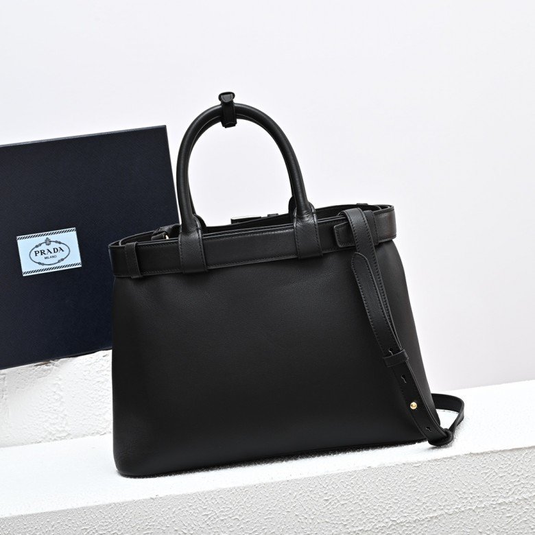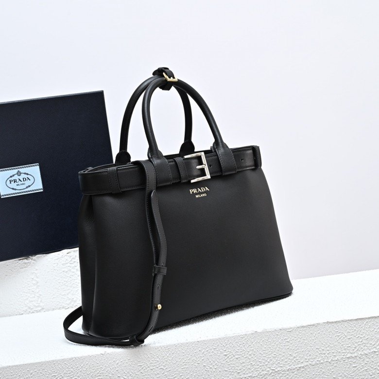 Prada Buckle large leather handbag with belt