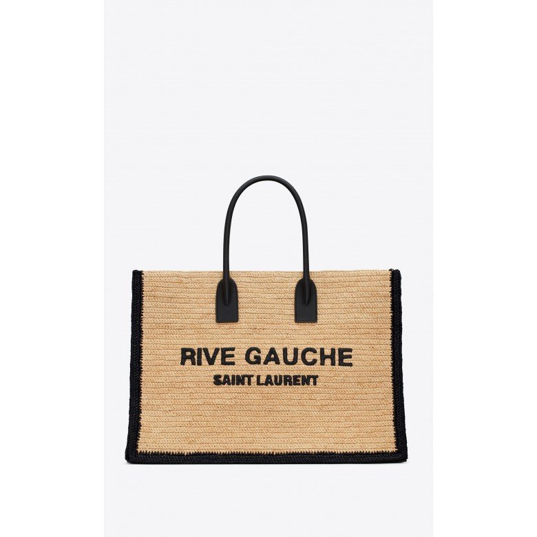 RIVE GAUCHE TOTE BAG IN RAFFIA AND LEATHER