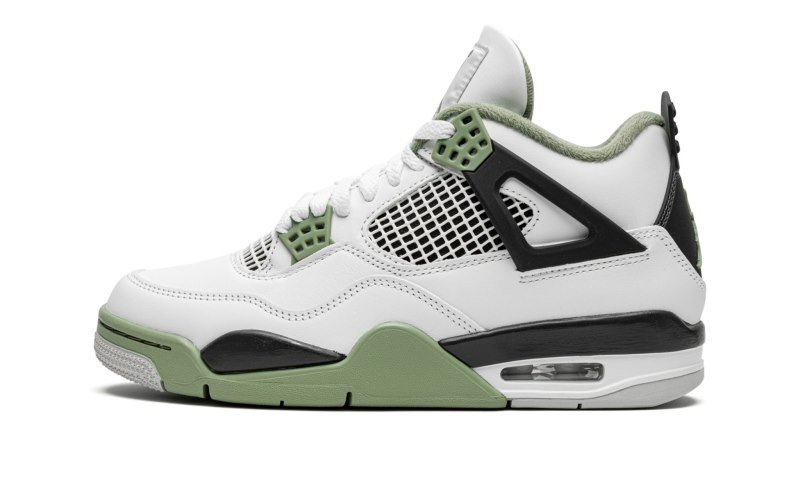 The Women’s Air Jordan 4 “Oil Green” is a women’s-exclusive colorway of the classic sneaker that adds to its impressive collection of releases. In the “Oil Green” colorway, this Jordan 4 is complete with a white leather construction with tonal netting on the tongue and mid-panel. Seafoam-colored eyelets are found on the sides of the shoe and additional Seafoam accenting appears on the Jumpman on the tongue and on the heel. The minty-green hue is also on the interior collar and on the rubber overlay on the toe and forefoot on the outsole. A visible Air bubble appears in the heel of the midsole. Release date: February 9, 2023
