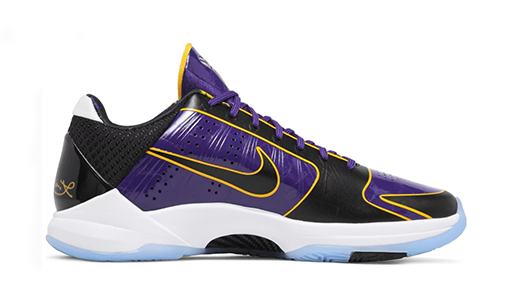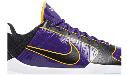 Launching as part of a special commemorative collection honoring the memory of Kobe Bryant, the Nike Zoom Kobe 5 Protro ‘5x Champ’ features a design inspired by the championship jackets gifted to the Mamba following his second and third NBA titles. The glossy patent leather upper is dressed in purple and black with contrasting gold accents. The Lakers’ signature purple and gold hues are repeated on the LA-themed custom sockliner.